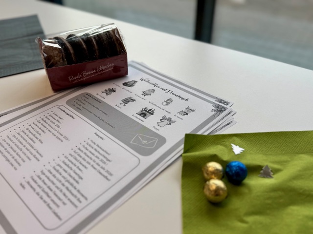 Die Bastelaktion wurde großzügig vom Partnerschaftsverein der beiden Städte unterstützt, wofür wir uns an dieser Stelle herzlich bedanken. Neben einer finanziellen Förderung kamen auch zwei Vertreter des Vereins persönlich vorbei, halfen beim Basteln und tauschten sich mit den Schülerinnen und Schülern über den Sinn und Wert der Partnerschaft aus. Für eine gemütliche Atmosphäre sorgten Lebkuchen, Plätzchen und wärmender Punsch.