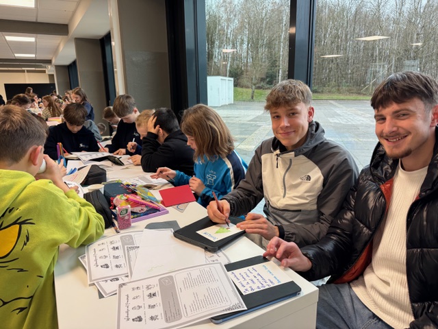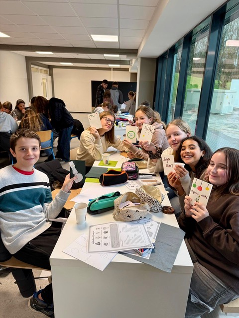 Am 27. November 2025 fand an unserer Schule zum zweiten Mal eine besondere Weihnachtsbastelaktion im Zeichen der deutsch-französischen Städtepartnerschaft statt. Knapp 60 freiwillige Schülerinnen und Schüler der Klassen 5 und 6 bastelten mit Unterstützung des Französisch-Nullkurses der Klassenstufe 11 von Frau Klapper Weihnachtskarten in französischer Sprache für Seniorinnen und Senioren in Luzy.